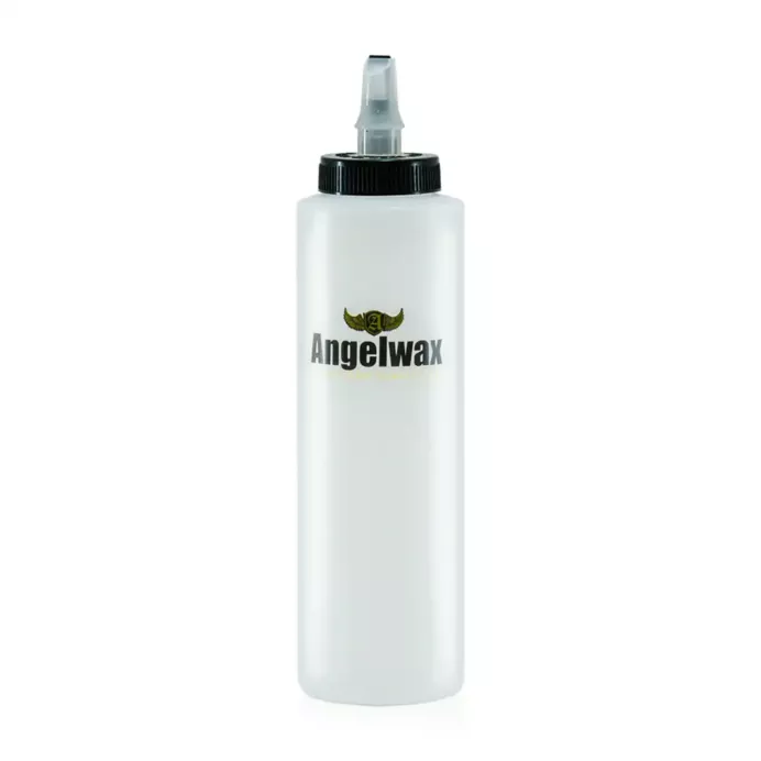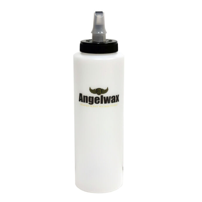 Angelwax Dispenser Bottle 350ml on joustava, tiivis ja iskunkestävä muovipullo, jossa on itsepuhdistuva korkki ja joka on suunniteltu kiillotusaineille ja muille viskoosille autonhoitotuotteille.