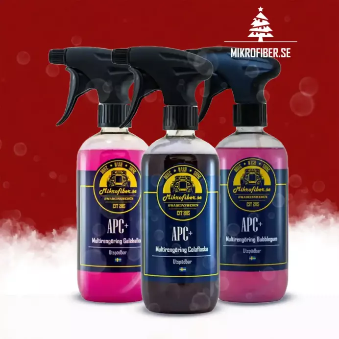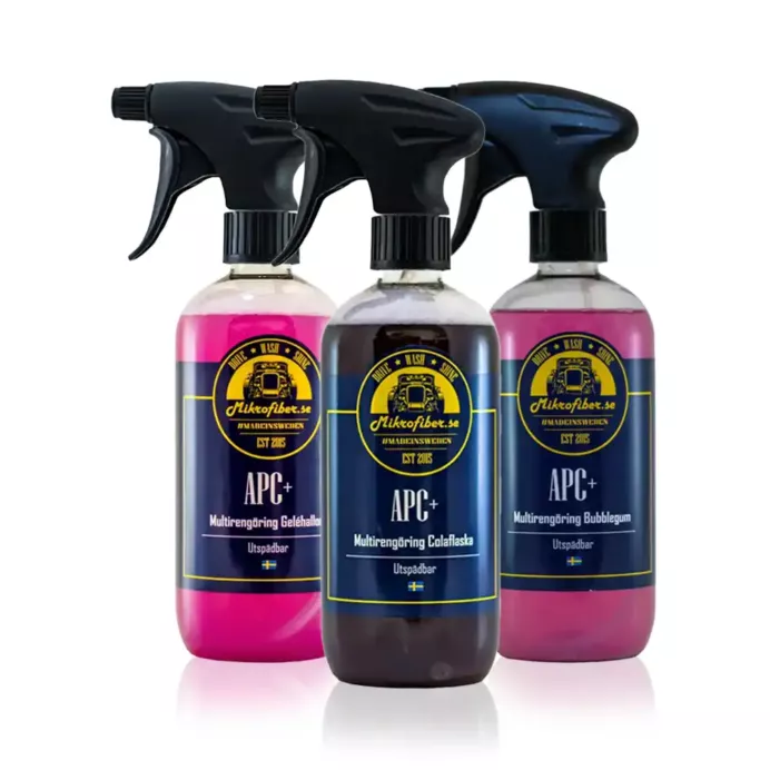 Kolme ehdotonta bestselleriä yhdessä paketissa, APC+ Multi-Cleaning! Paketti karkin tuoksulla! Kaikki Mikrofiber.se-sarjan kemiat on valmistettu Ruotsissa. Läs mer