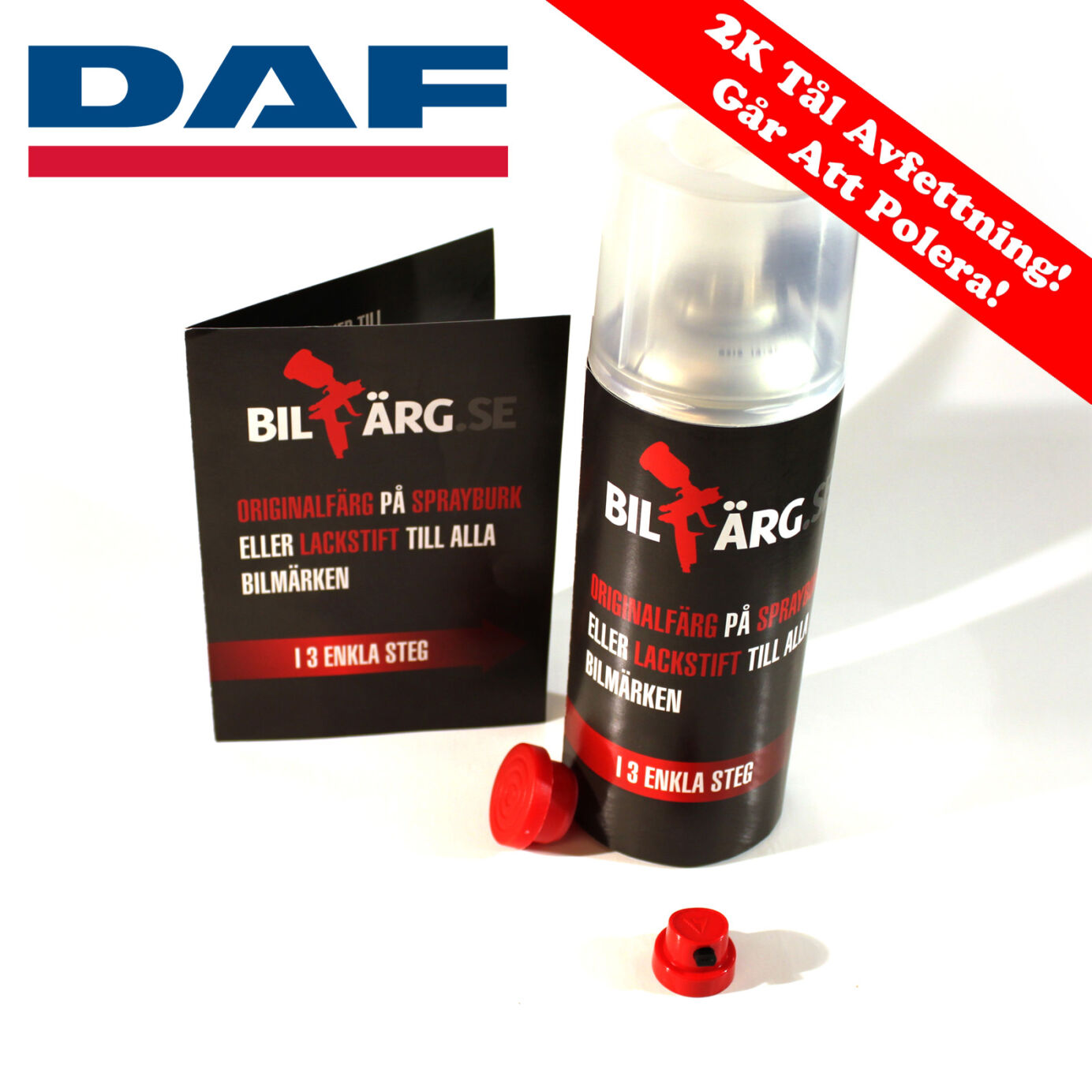 Etsitkö korjausmaalia / maalitikkua / spraymaalia DAF:lle? Tarvitsetko korjaamaan kiveniskemiä, naarmuja maalissa tai ruiskuttamaan pieniä vaurioita autoon? Sitten meillä on laadukkaita 2-komponenttipaketteja, joissa on mukana kirkaslakka. Voit valita 2-komponenttisten spraymaalipakettien ja 2-komponenttisten korjausmaalipakettien välillä.