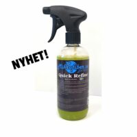 Quick Refine on nopea pesu, nopea detaljointi, nopea vahaus, kutsu sitä miksi haluat. Se keskittyy puhdistusominaisuuksiin. Quick Refine on erityisesti suunniteltu pyyhkimään pois sormenjäljet, pölyn ja muun kevyen lian. Tai kun lapset ovat käyneet autotallissa tökkimässä rasvaisilla sormillaan juuri kiillotettua jalokiviänne. Varmista, että levität todella paljon tuotetta raskaampaan likaan, jotta se irtoaa likaantuneesta pinnasta eikä naarmuta. Kookoksen tuoksu tekee tuotteesta entistäkin miellyttävämmän käsitellä!