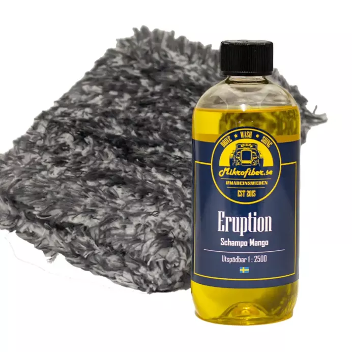 Pesupakkaus sisältää kaksi suosikkiautonpesutuotetta. Smooth Wash Pad -pesutyynymme, joka on erittäin hellävarainen maalipinnalle, ja Eruption -vahaton autoshampoomme, joka puhdistaa tehokkaasti ja tarjoaa liukkaan pinnan sienen ja maalipinnan välille vähentääkseen saippuan naarmuuntumisriskiä shampoopesun aikana. Eruption shampoo on erittäin runsas ja kestää 125 pesukertaa, jos annostelet shampoon oikein. Pesupakkaus sisältää: 1 Eruption shampoo 500ml (valitse mansikan tai mangon tuoksu). 1 Smooth Wash Pad -mikrokuitusieni Läs mer