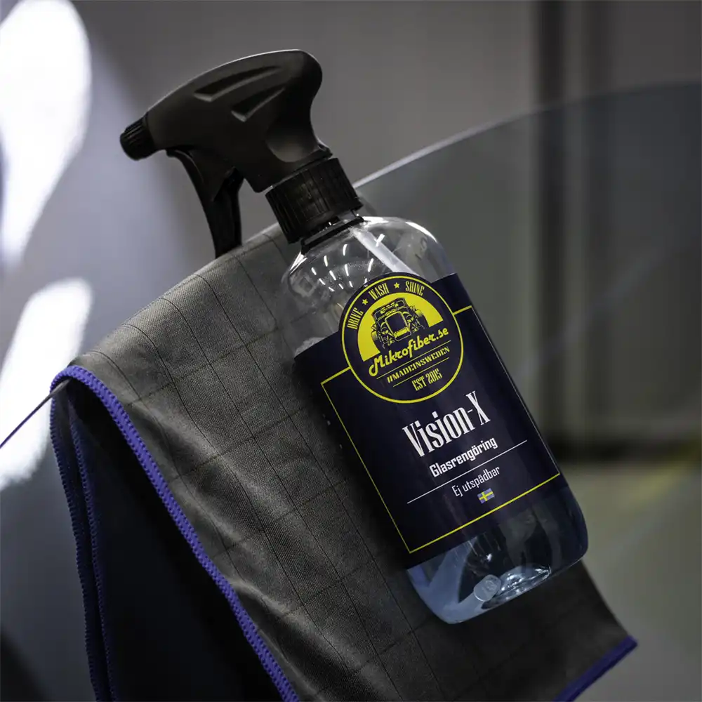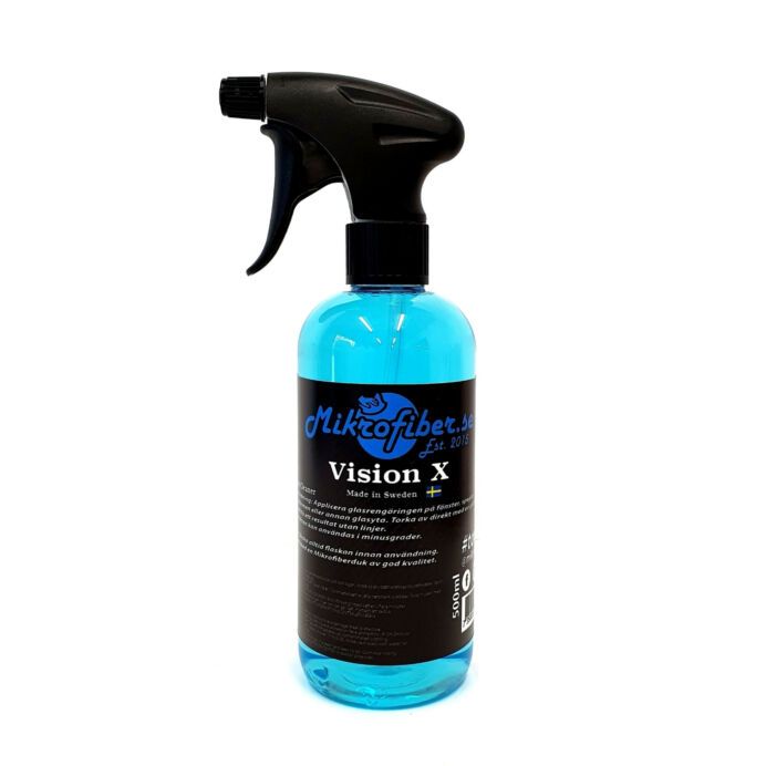 Vision-X lasinpuhdistusaine on erityisesti suunniteltu lasipintojen puhdistukseen. Se liuottaa rasvaa, likaa ja nikotiinisaostumia. Suihkuta Vision-X puhdasta mikrokuituliinaa, mieluiten lasiliinaa, kuten Vision Wipe -liina, jotta vältät nukkaantumisen ja saat tuloksen ilman raitoja. Pyyhi pinta, käännä liina ympäri ja pyyhi pois. Näin yksinkertaista se on! Vision-X toimii jopa pakkasessa! Sitä on myös täysin turvallista käyttää muovipinnoilla. Mikä tarkoittaa, että sitä on täysin turvallista käyttää auringon suodattamilla ikkunoilla, TV-ruuduilla ja muilla. Ammattilaisen kemiaa, yksinkertaisesti.